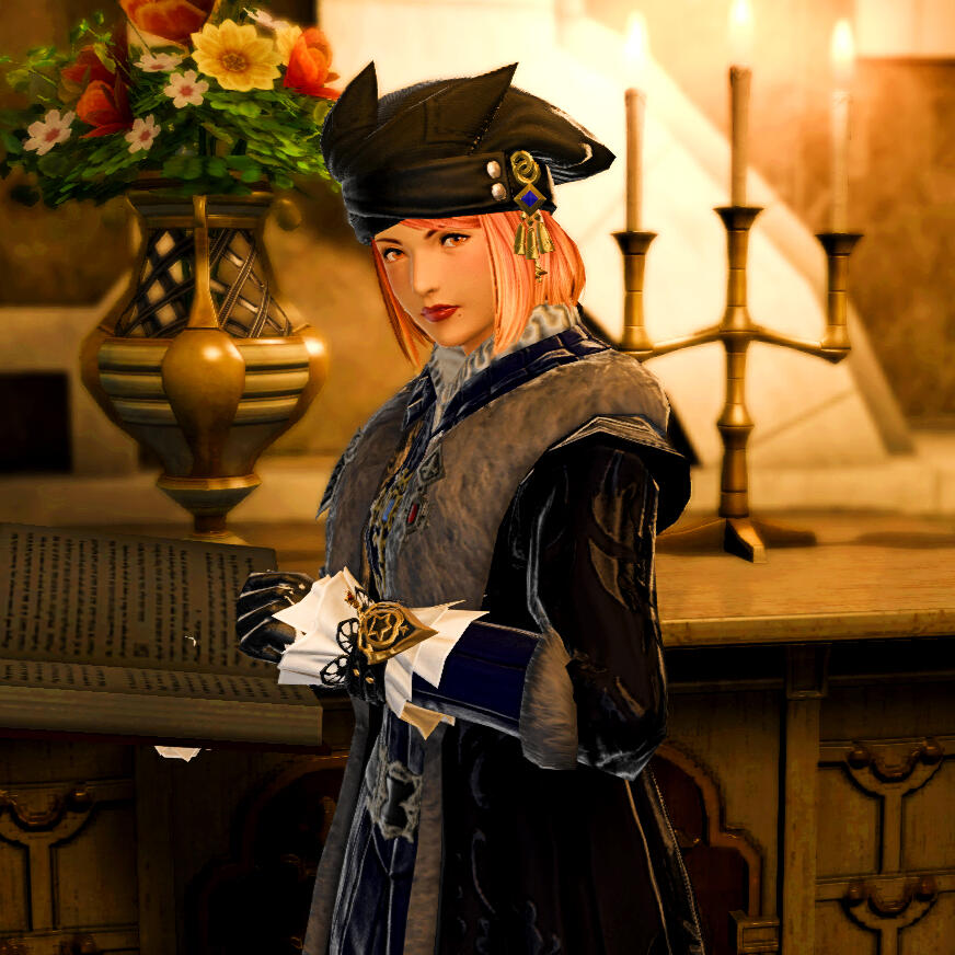 House Bale is an Ishgardian minor House known for occasionally producing Azure Dragoons; most recently and notably, Alberic Bale, mentor and foster father of Estinien Wyrmblood. Alberic’s elder brother, Raphael Bale, carried on the lesser-known duties of this House and passed it on to his three children, Felix, Anne-Sophie, and Noémie: namely, to foster all knowledge, though it may be considered heretical. Long shielded by the auspices of a few Azure Dragoons along the way, all those born to this House learn from a young age to avoid causing a stir whenever possible. Thus, they attend church, they train and serve as Temple Knights, astrologians, chirurgeons and teachers; all in service to what they view as their sacred duty to preserve knowledge and enrich Ishgard with all they know.Anne-Sophie, the middle daughter of Raphael and Mathilde Bale, is nearly always seen wearing her House ring and earrings; brilliant fire opals, with House Bale’s words, Suos Cultores Scientia Coronat (“knowledge crowns those who seek her”), engraved on their settings. Like all those who came before her, she trained in sword and spear from a young age, as well as receiving a comprehensive education at home and, later, the Scholasticate. Her ability to manipulate aether led to her serving in Ser Ibaux’s First Irregular Arms Unit in the Dragonsong War; a unit of so-called Mystic Knights, sanctioned by the Holy See in order to gain an edge against Nidhogg’s wrath. Every Ishgardian suffered in that war; Anne-Sophie was no exception. Once her first tour of service ended, she devoted herself entirely to the study of finding a different world; a gentler one, full of flowers, peace, and faerie tales. Though she succeeded in travelling to and eventually returning home from the First Shard, it came at great cost; the details of which can be learned by asking her in character!Anne-Sophie's insatiable curiosity led her to return to the First Shard at last, never to return to the Source. One can imagine she is still out there, dreaming, and serving a new code of honor.